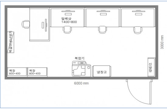 물론 비품 축소, 추가여부에 따라 책상 수는 조금 달라질 수 있습니다.